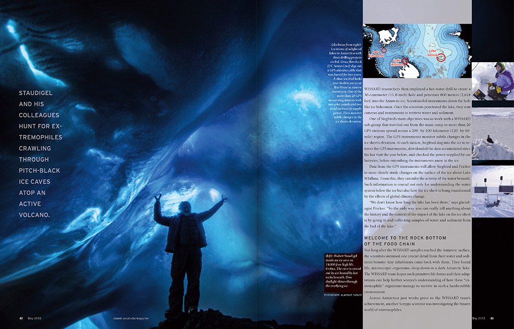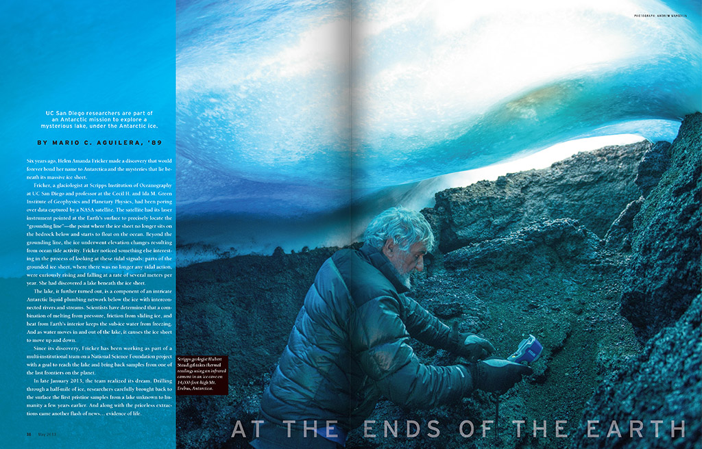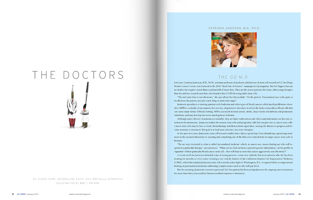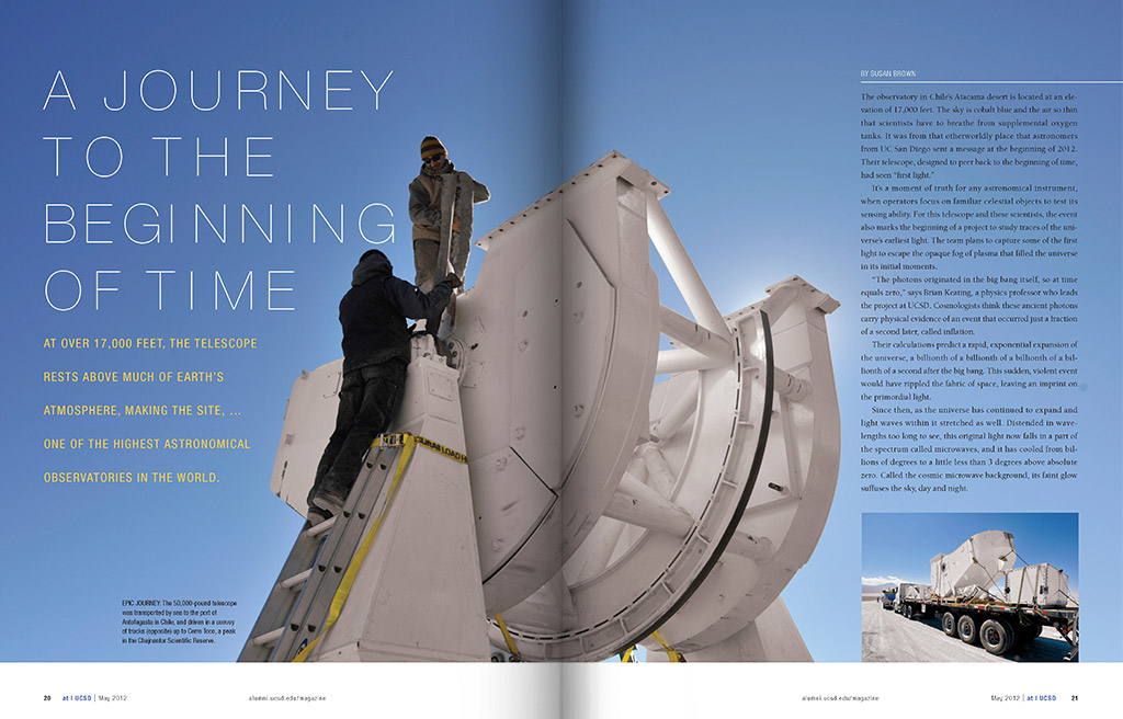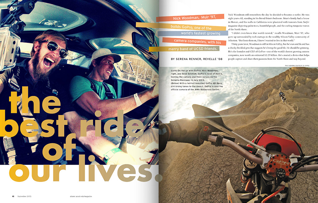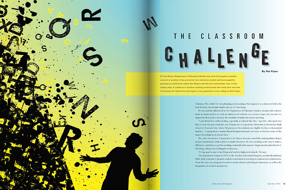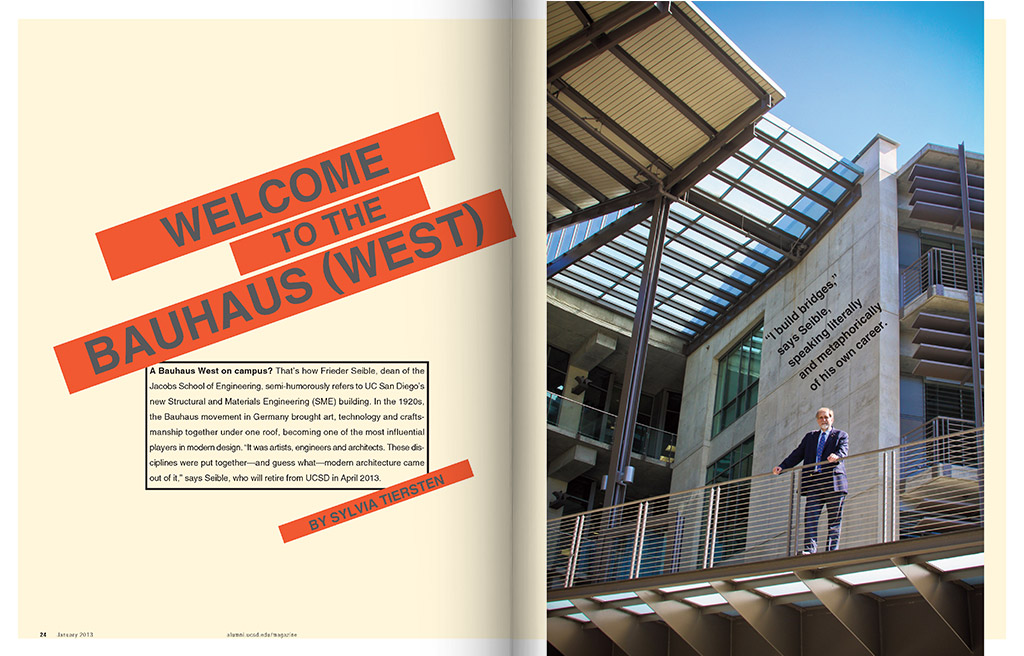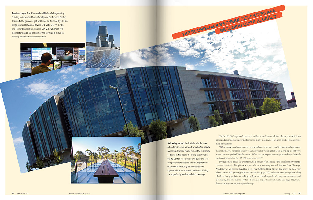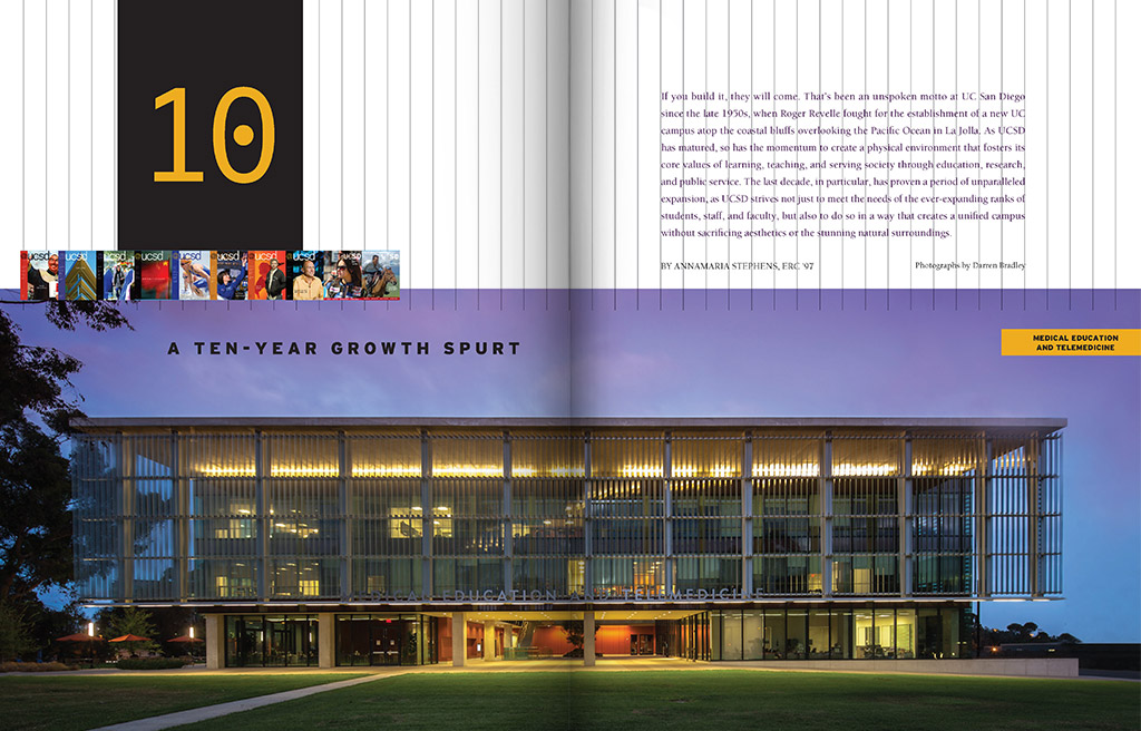 Produced and published quarterly, the Triton magazine highlights the achievements of UC San Diego graduates, students and faculty. Known for their scientific achievements and dedication to the arts, the magazine reflects the modern graphics and design that illuminate the stories.